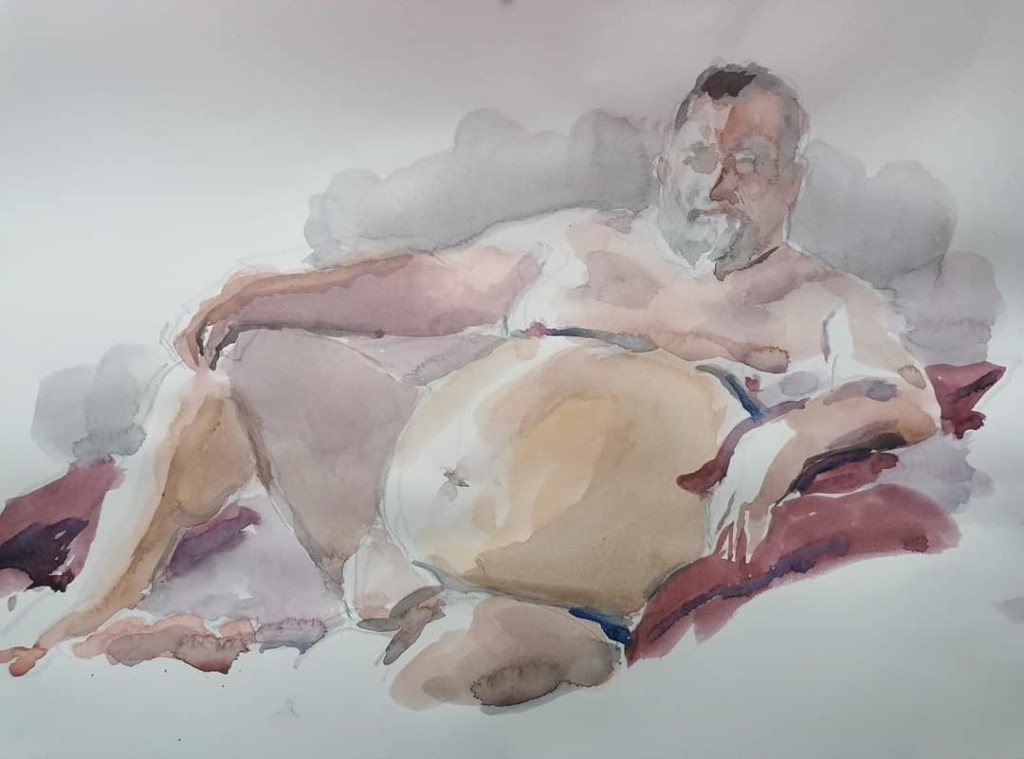 Cualquier amante de los osos que frecuente redes sociales como Instagram, estará familiarizado con la figura de Alexis Cortijos-Lesté. No se me ocurre una persona más entrañable a la hora de poner su cuerpo al servicio del arte y de la belleza fuera de los cánones oficiales. Nunca he conocido a ningún modelo artístico tan vocacional y entregado como Alexis, siempre dispuesto a explorar nuevos terrenos de sensualidad delante de la cámara, en la superficie de un lienzo o en las formas de una escultura. Llevaba mucho tiempo con ganas de saber más de él y no me ha sorprendido nada descubrir que Alexis es un reflejo diáfano de lo que transmiten las obras en las que aparece. Bonito, sensual, apacible, creativo, inquieto y al alcance de cualquiera. Así que ha sido todo un gustazo compartir un rato con él.