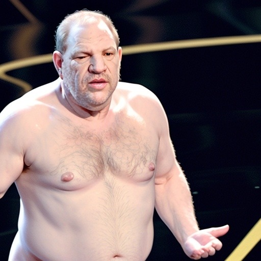 Lo que más me ha impresionado del mes es esta serie de imágenes #fake generadas con #AI protagonizadas por el detestable villano hollywoodiense Harvey Weinstein con el título Harvey Weinstein vuelve de los oscars con las manos vacías [via suruatgip tumblr]